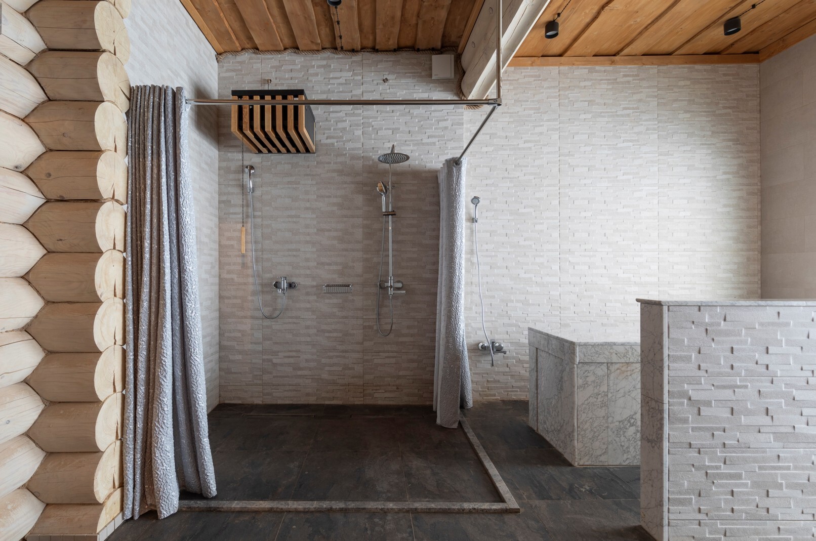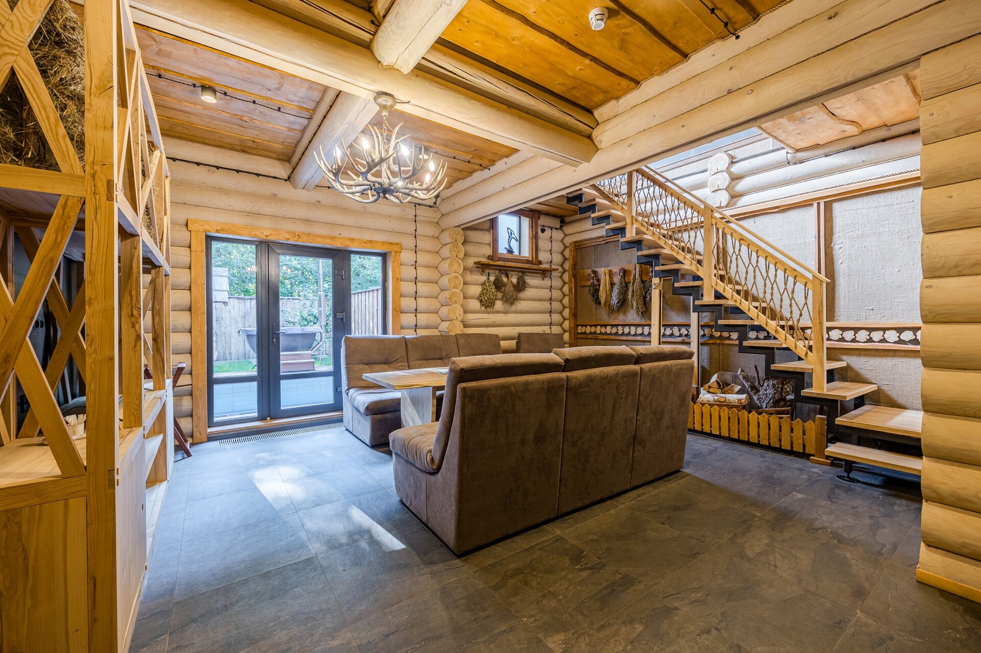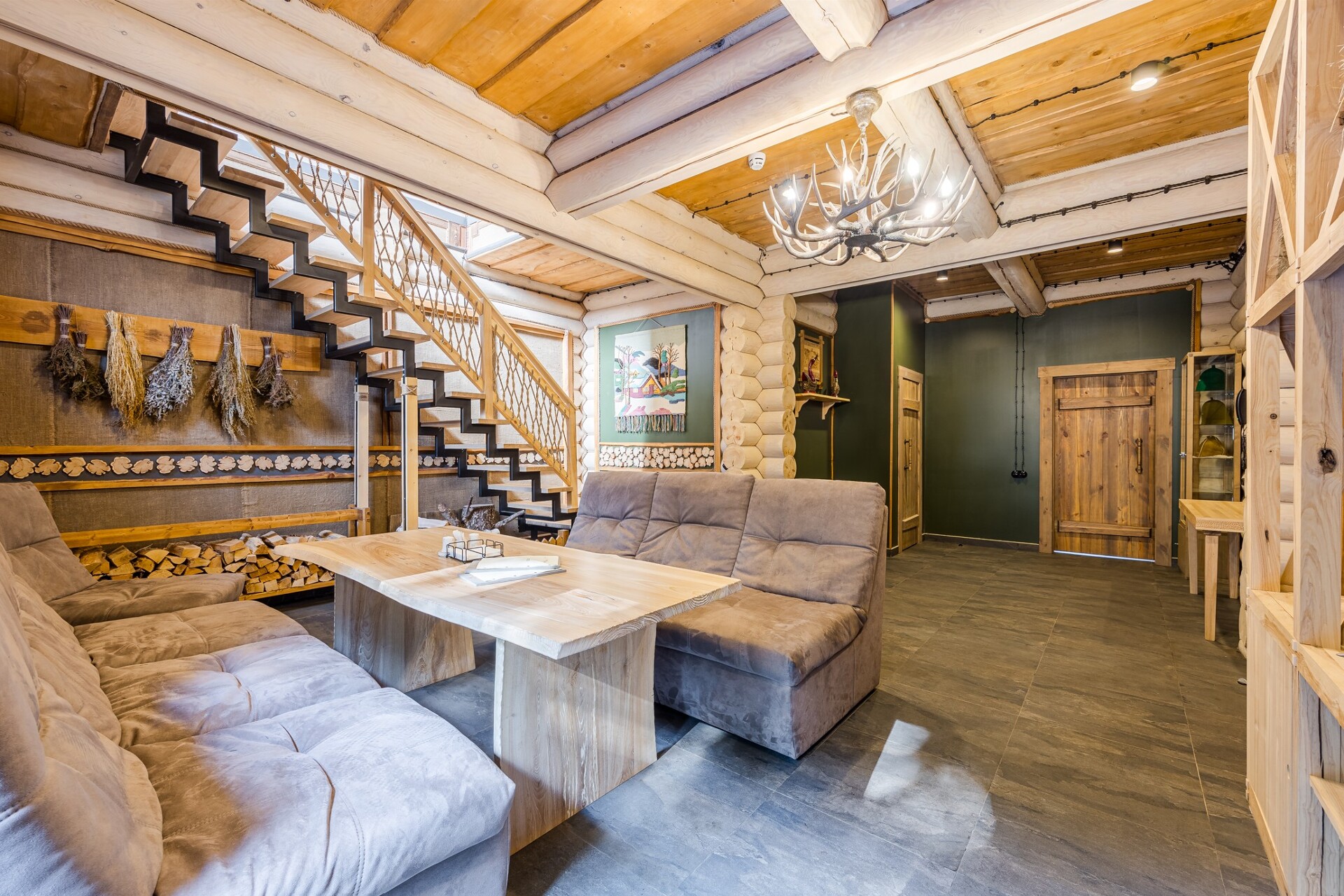 Полок в парной застилается лапником, 16 вениками пихты, наполняя воздух парной незабываемым свежим ароматом