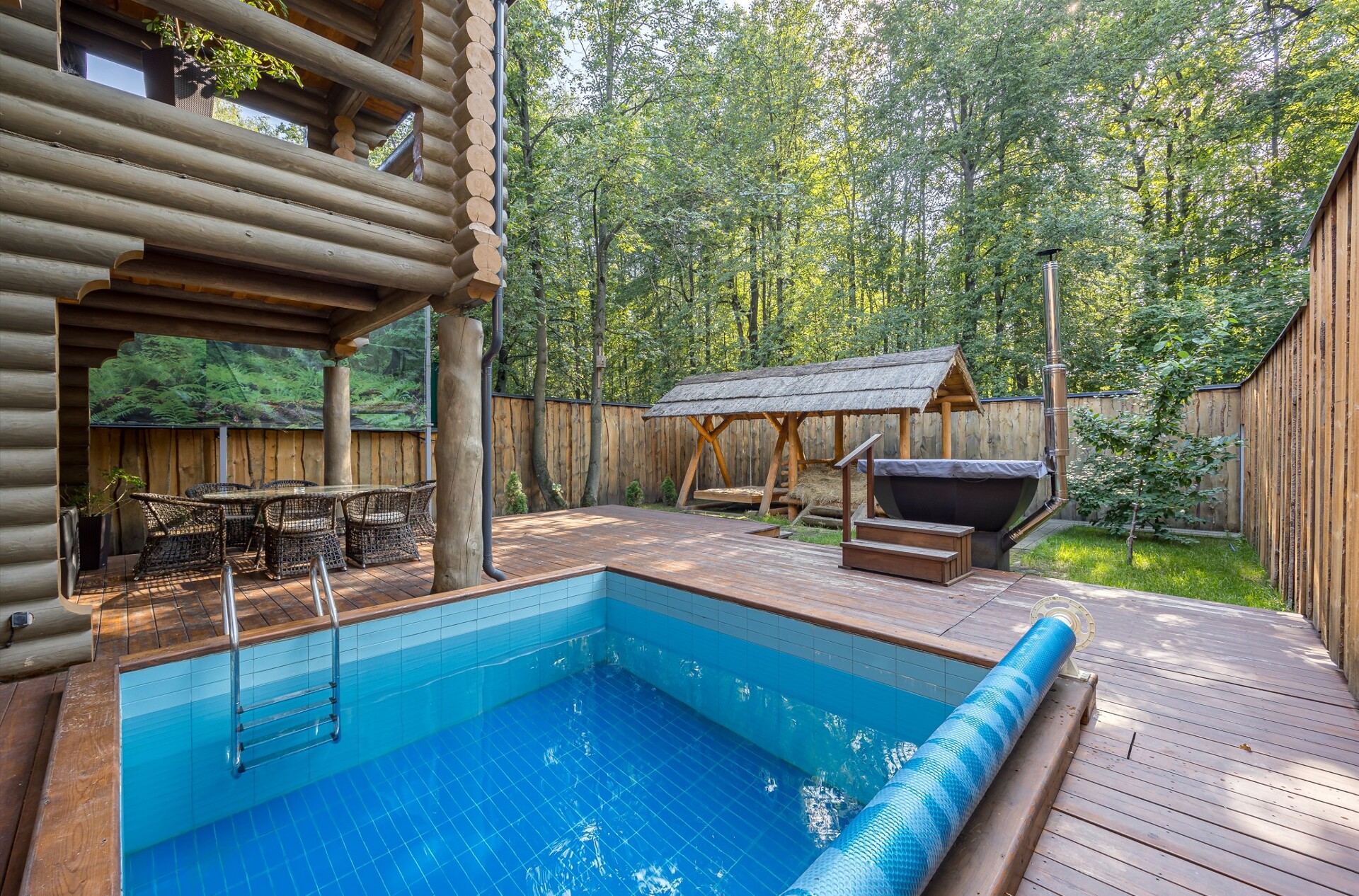Своя закрытая территория в лесу среди многолетних деревьев